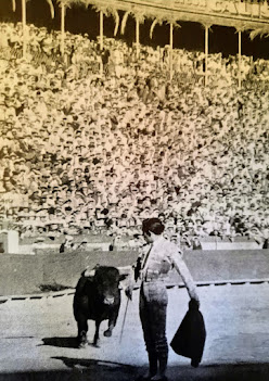 El día del doctorado, el coso de la calle Xátiva, incapaz de dar cabida a tamaña demanda, luce abarrotado, con el cartelito de “No quedan localidades” colgado en taquillas desde dos días antes. Todos quieren ver el ingreso de Pedrés en el escalafón superior y la despedida de Litri, aunque –nadie dice adiós definitivamente a los veintidós años– muchos intuyan que ésta no será definitiva. A la hora del paseíllo, el ambientazo es indescriptible y de tumultuosa puede calificarse la ovación que acoge a los toreros cuando éstos abandonan el portón de cuadrillas e irrumpen en el ruedo. A la izquierda Litri, de verde manzana y oro; en el centro, algo más retrasado, el sobresaliente Pepe Catalán, y a la derecha, el gesto duro, sobrio, de ojos hundidos y determinación prendida en el rictus obcecado de su boca, de Pedrés, que luce un flamante terno rosa y oro.