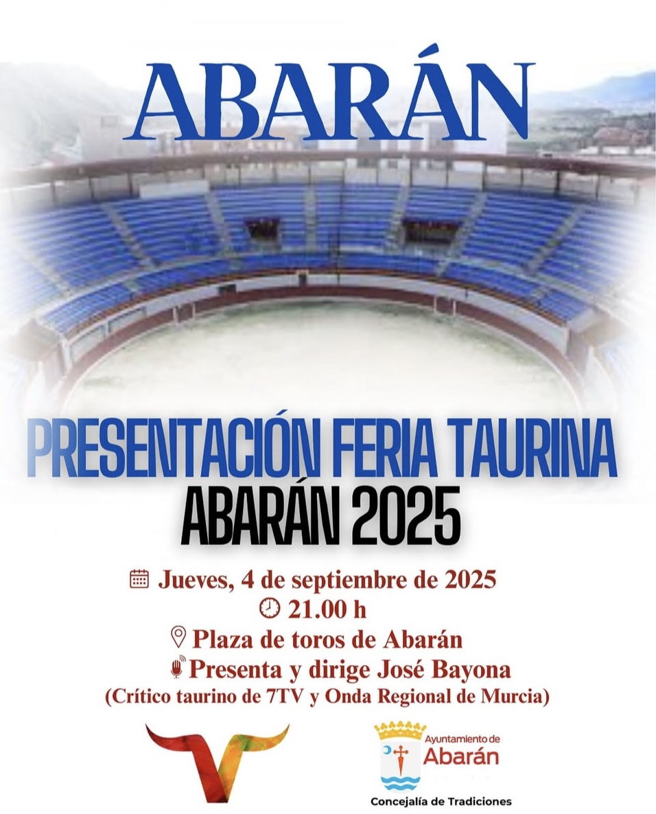 Mañana, Jueves 4 de Septiembre a las 21:00 horas, se presentará la FERIA TAURINA DE ABARÁN 2025.
