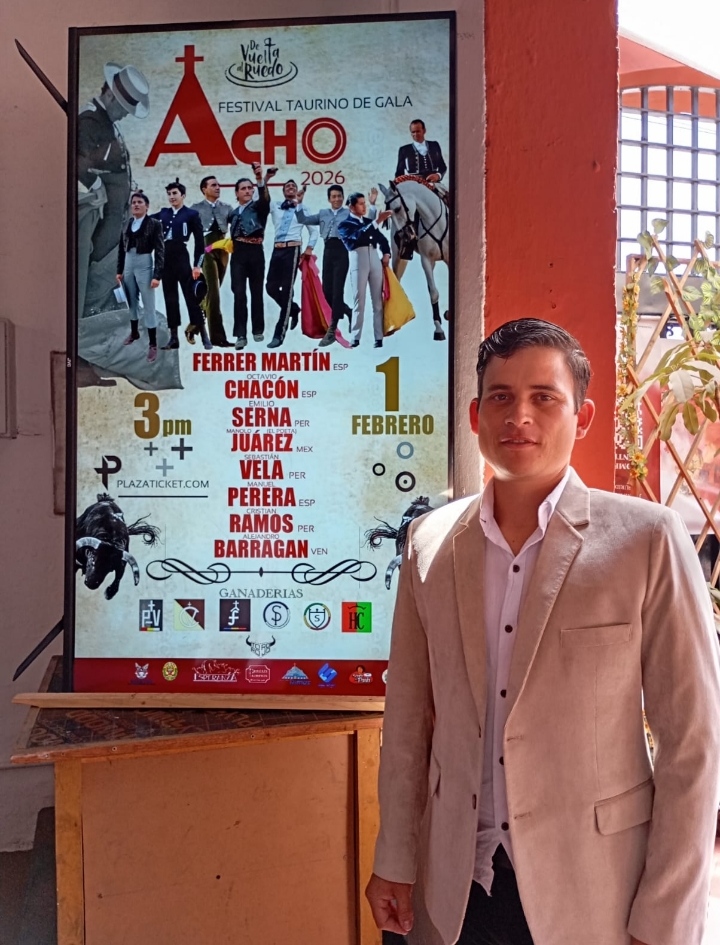 El novillero venezolano Alejandro Barragán forma parte del cartel del festival taurino de gala a celebrarse el domingo 1 de febrero de 2026 en la plaza de toros de Acho en Lima, organizado por la empresa «De Vuelta al Ruedo» lo que ratifica el excelente ambiente de Barragán en Perú.