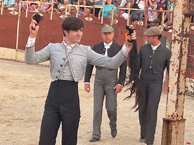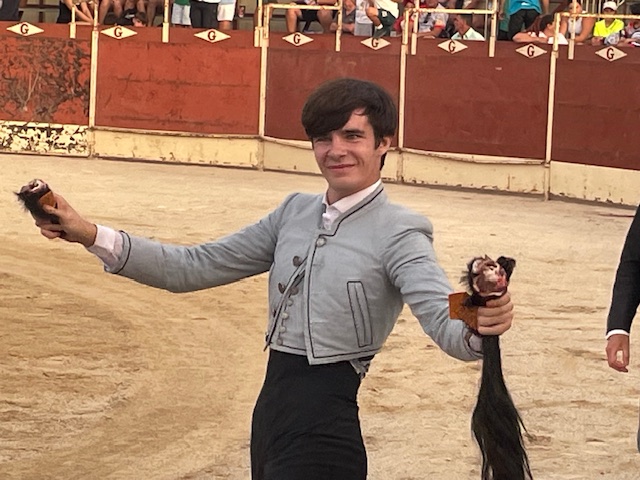 MARIO VILAU otra tarde más por la puerta grande, 14 actuaciones esta temporada y 14 salidas a hombros. Lo tiene muy claro el torero catalán ve toros por todos lados y le sirven casi todos sus oponentes. Cuajó una gran tarde de toreo tanto con el capote como con la muleta en sus dos oponentes y además los mató muy bien a ambos. La gente se rindió al joven torero y pidió con mucha fuerza los máximos trofeos en el último novillo pues la faena fue larga, vistosa y sabiendo. Está este joven novillero con picadores en un momento espectacular.