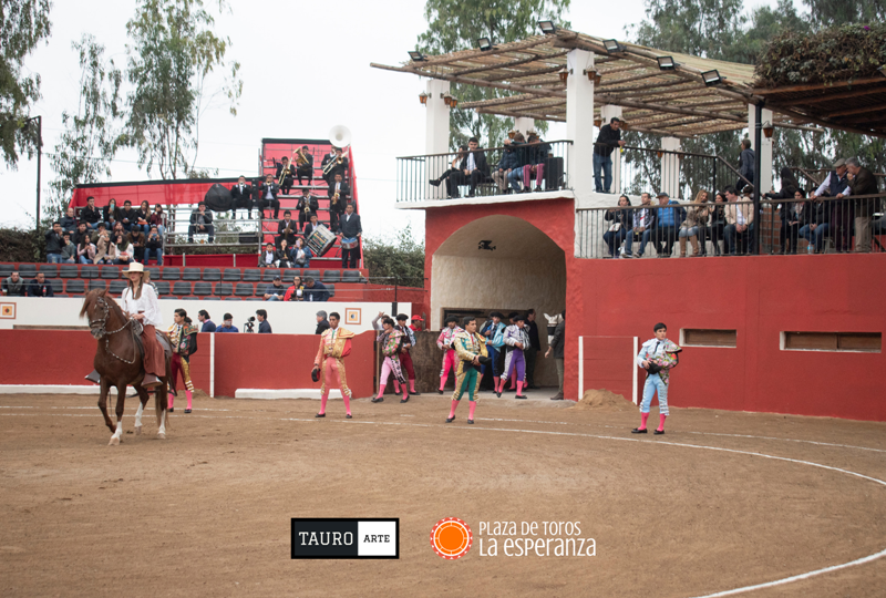 La tarde arrancó con el despeje de plaza con nuestra amazona, y con el pasodoble «España Cañí» a cargo de la banda liderada por el maestro Eloy Oscco.