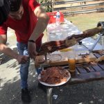 A partir de las 11 de la mañana se comenzó a realizar todas las actividades de tipo culinario, mientras los ganaderos preparaban las vacas para la capea acercándolas a los corrales de la plaza de tientas de la finca.