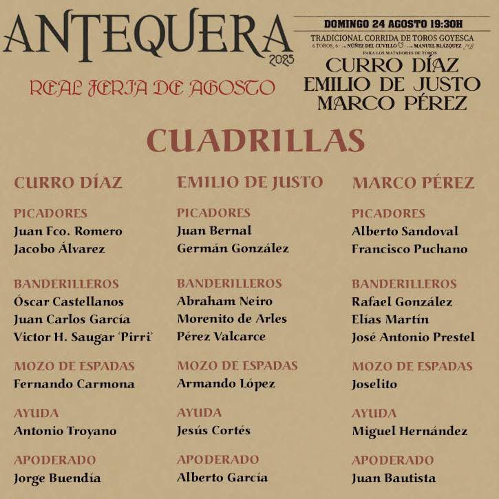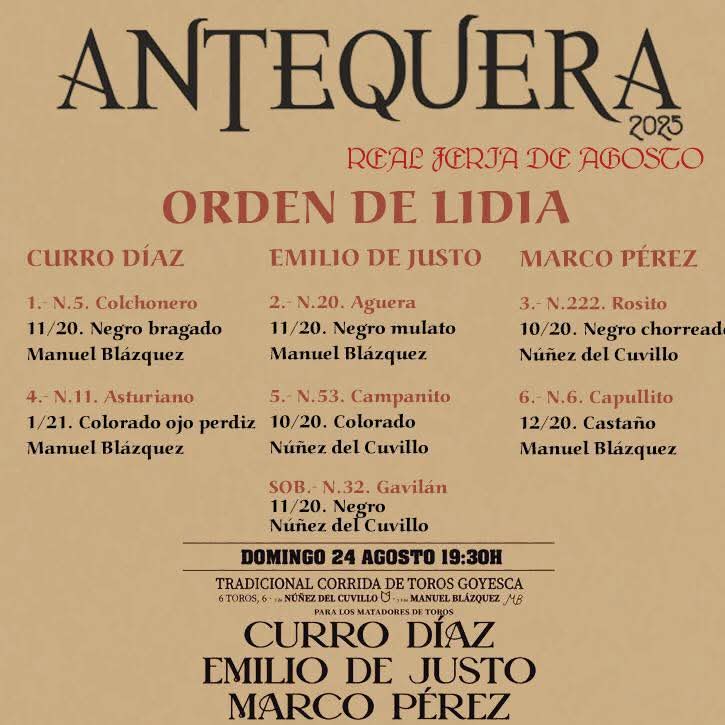 Sorteados y enchiquerados los toros de Manuel Blazquez y Núñez del Cuvillo que abrochan la feria Real de Antequera