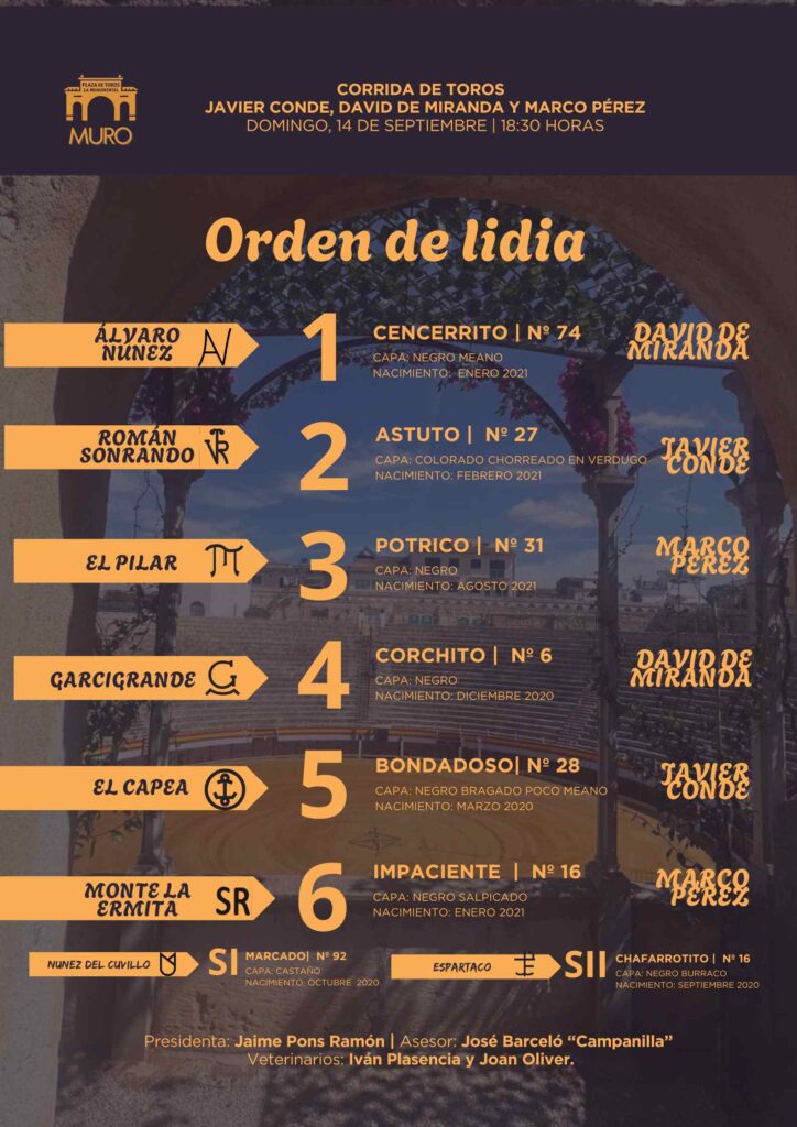 Orden de Lidia – Monumental Plaza de Toros de Muro