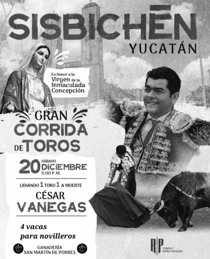 En Sisbichén el sábado 20 de diciembre lidiará un toro en festejo mixto, para continuar el domingo 28 en Yalcobá mano a mano con Mauro Lizardo, en ambas tardes los toros serán de la ganadería de San Martín de Porres.