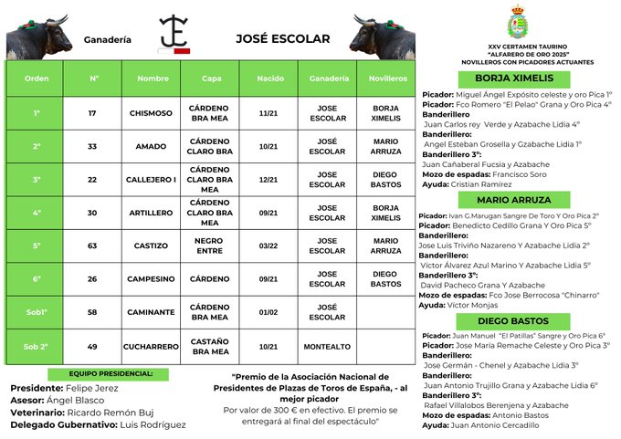 Sorteados y enchiquerados los novillos de José Escolar para la tarde de hoy en Villaseca de la Sagra