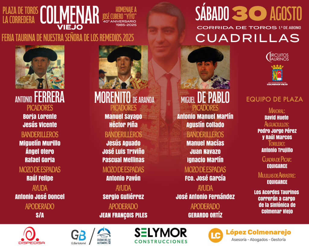 Este es el orden de lidia y la relación completa de las cuadrillas que intervendrán en el espectáculo y las autoridades que regirán el mismo: