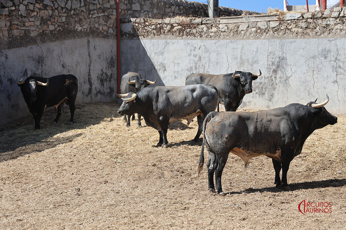 Los toros de Rehuelga que se lidiarán esta tarde en el primer festejo de la Feria de la Virgen de los Remedios de Colmenar Viejo han sido enchiquerados este mediodía en el coso de La Corredera.