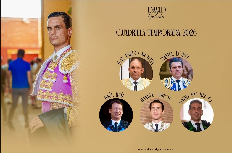 El diestro gaditano David Galván ha cerrado su cuadrilla de cara a la temporada 2026, un año que aborda con máxima ilusión y con la incorporación de tres nuevos profesionales que se suman a su equipo.