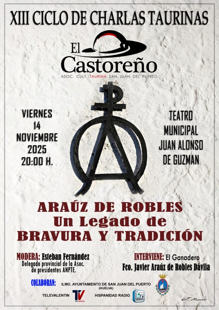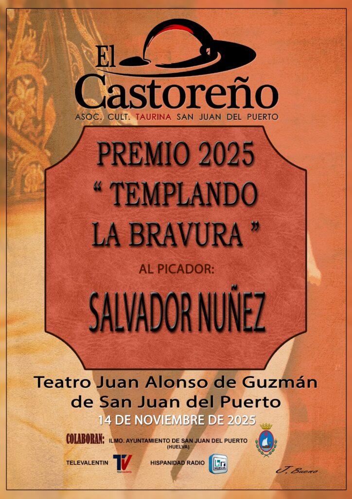 Actualidad TaurinaPremios Definidas las XIII charlas taurinas El Castoreño 6 noviembre, 2025 FacebookTwitterPinterestWhatsApp La Peña Cultural Taurina El Castoreño de la localidad onubense de San Juan del Puerto define sus charlas taurinas y el premio que otorga cada edición a un destacado picador. Estas son las propuestas