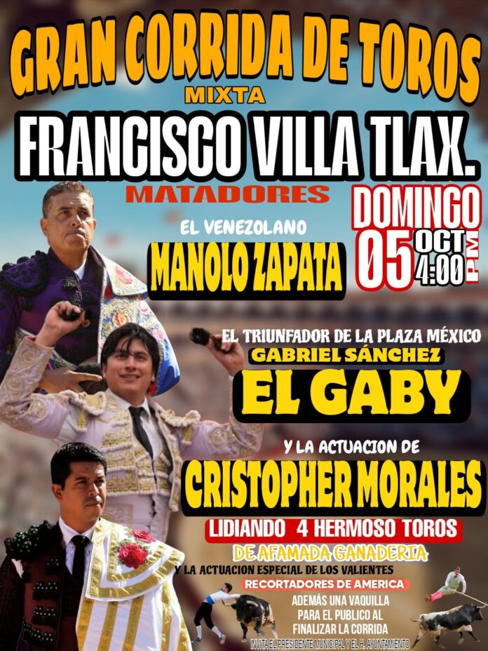 La plaza de toros de la población de Francisco Villa en Tlaxcala será el escenario internacional donde se presentará el matador venezolano Manolo Zapata, quien este cinco de octubre afronta en esta región su segundo paseíllo de los que componen su agenda inicial en territorio azteca.