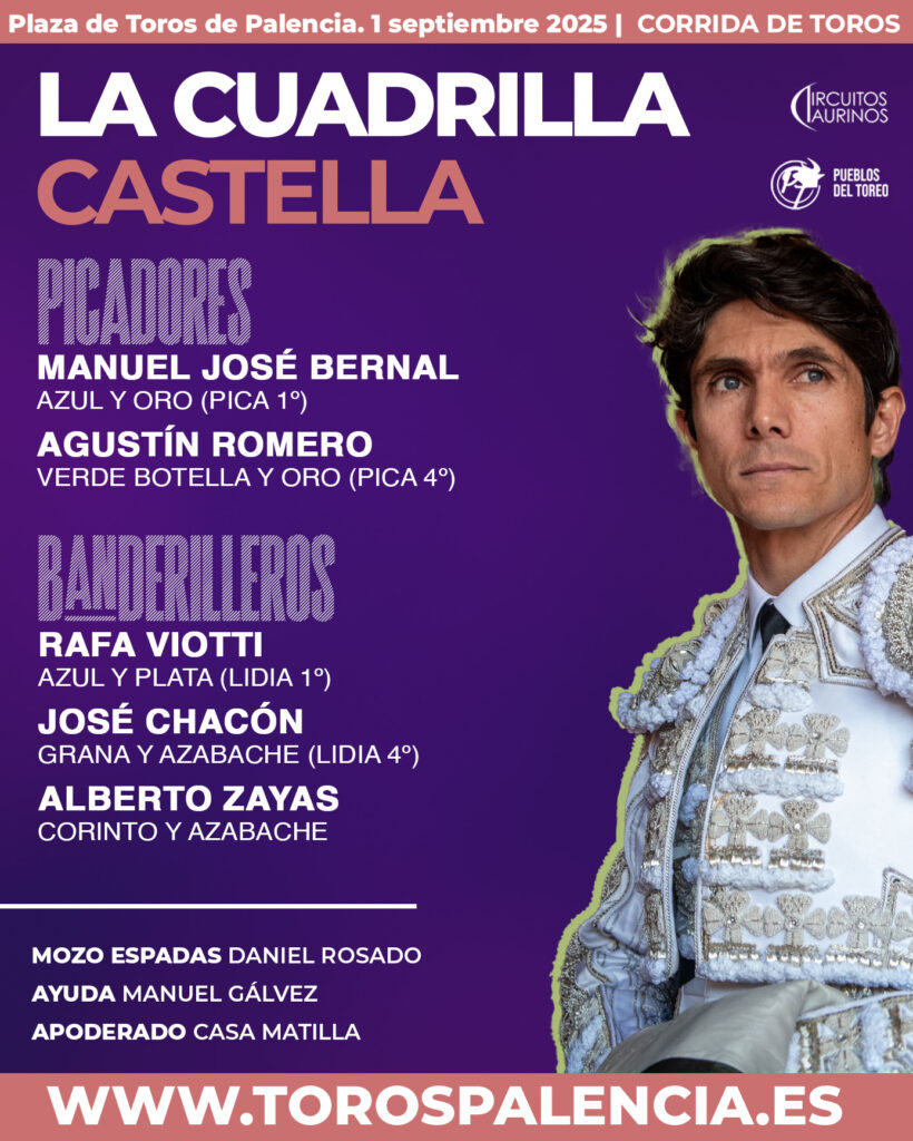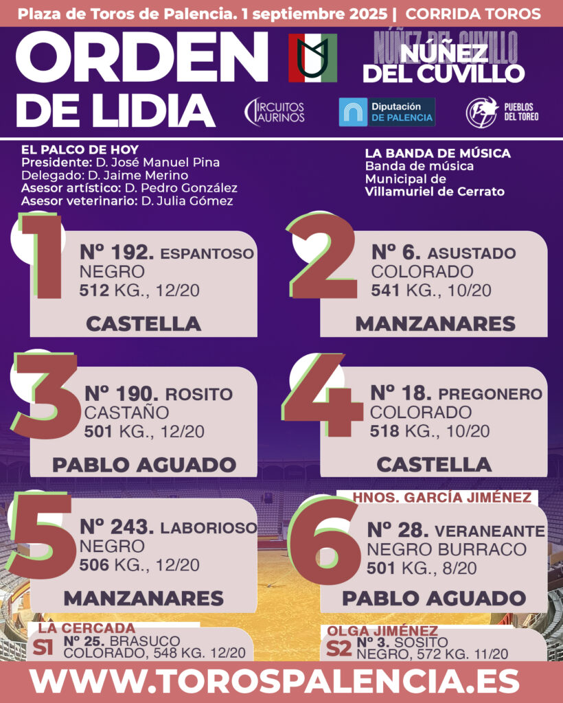 Actualidad Taurina «Espantoso» abre la tarde en Palencia 1 septiembre, 2025 FacebookTwitterPinterestWhatsApp Screenshot Cinco de Cuvillo y uno de Hnos. García Jiménez para Palencia Los matadores encargados de su lidia y muerte son Sebastián Castella, José María Manzanares y Pablo Aguado Orden de lidia y cuadrillas