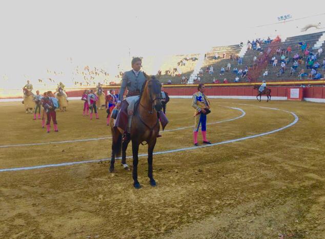 Salió el primero de la tarde de Luis Terrón, un toro bien presentado pero distraído en el que todo lo puso Diego Ventura. Percance desagradable durante la lidia a lomos de «Ilusión» pero afortunadamente sin consecuencias. Lío gordo con las banderillas cortas. Dos orejas