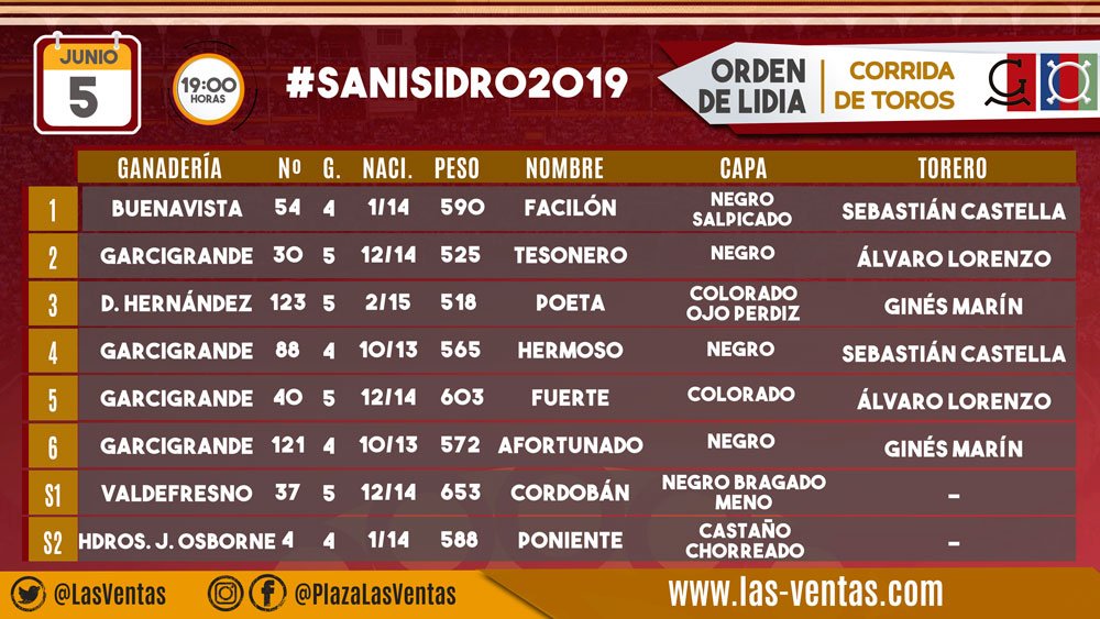 ORDEN DE LIDIA GARCIGRANDE 5 JUNIO