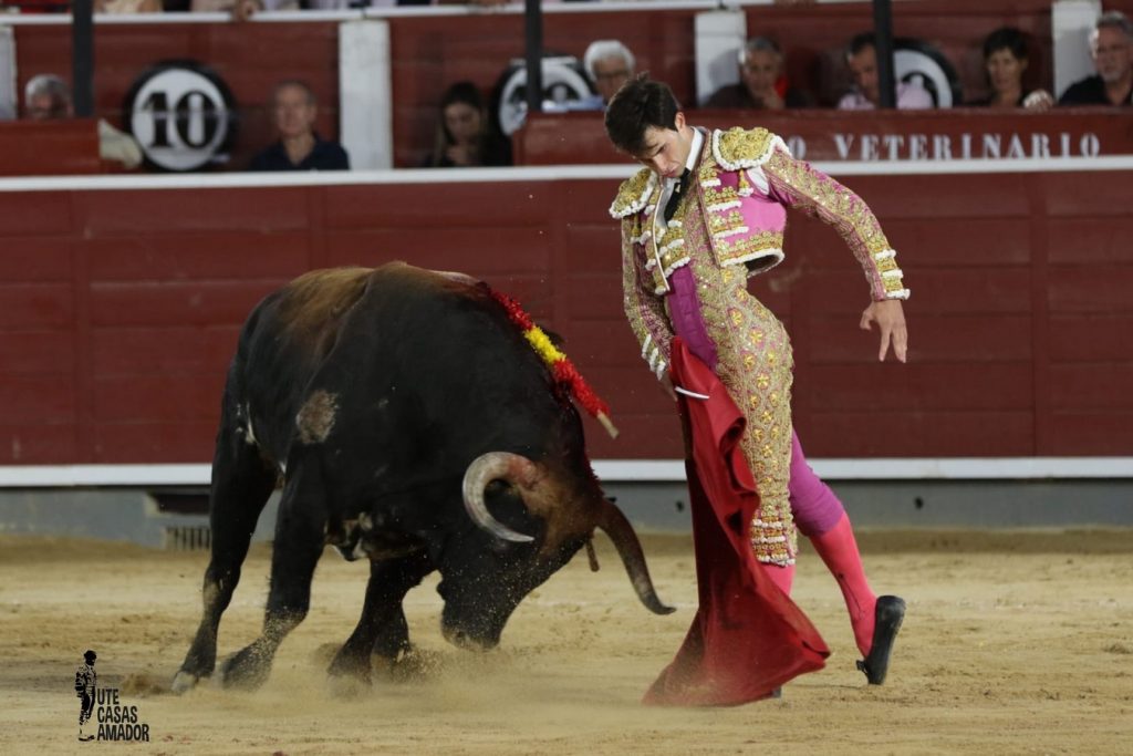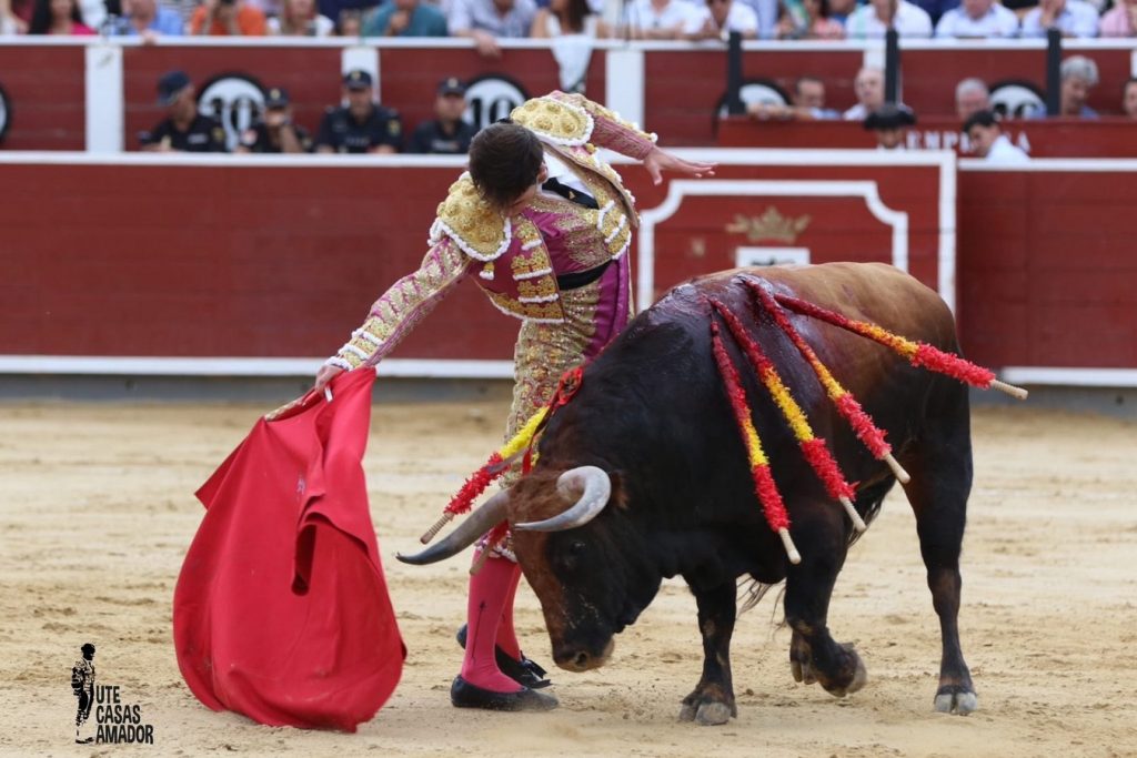 6º ‘Atrevido’, nº 48. Hasta tres largas cambiadas de rodillas en el tercio recetó Samuel Navalón al sexto, que no terminó definirse de salida. Buena lidia de Agustín de Espartinas, sobresaliendo con los garapullos Manuel Larios y Alfredo Cervantes. Labor de mucho valor, de imposición, de autoridad y de poder de Samuel Navalón que rayó a una altura extraordinaria con este animal de Conde de Mayalde. El final, metido dentro de los terrenos del toro, con la arboladura rozándole los alamares de la chaquetilla puso al público en pie. Pinchazo y espadazo arriba. Oreja.
