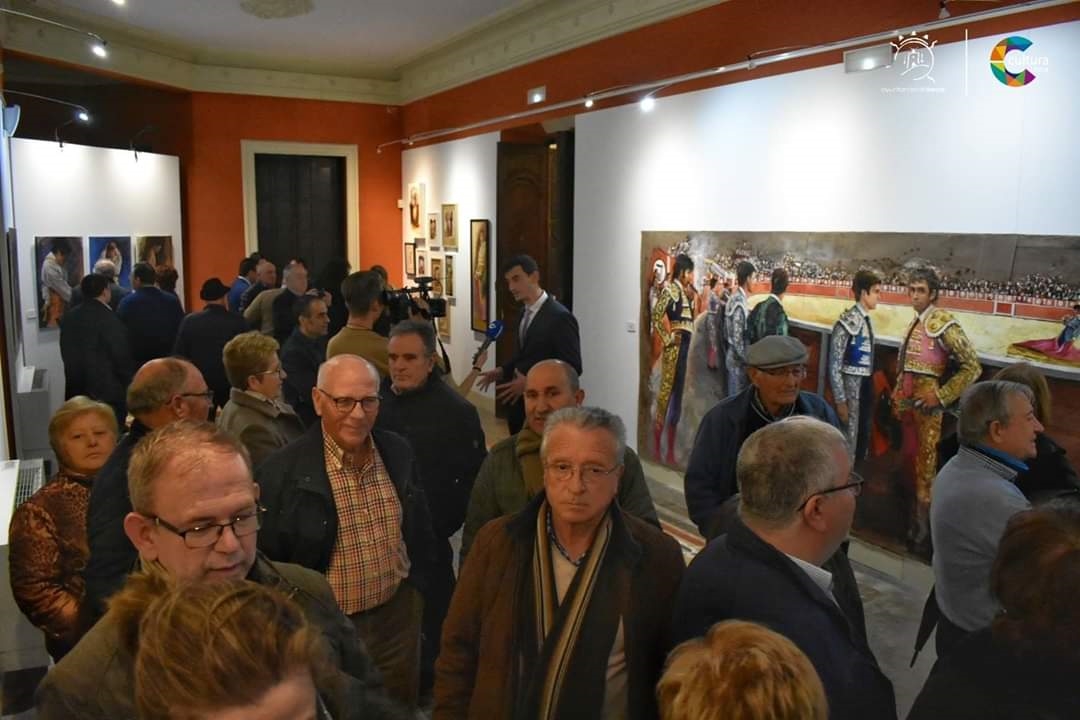 El primer acto del ciclo fue la inauguración de una extraordinaria exposición del reputado pintor albaceteño José Ángel Ramírez Cuenca titulada “Arte de la Tauromaquia”, que viene complementada con obras sobre caballos y sobre “El legado de Cervantes”. La muestra, que permanecerá abierta al público hasta el 25 de febrero, podrá visitarse de lunes a viernes de 11 a 14 h por las mañanas y de 17 a 20 h por las tardes de forma totalmente gratuita, y supone una buena oportunidad para acercarse a parte de la obra de un pintor que, conjugando diversas técnicas, sabe captar con realismo y creatividad las sensaciones y sentimientos que se viven en algunos momentos de la lidia, la psicología de los personajes, el ambiente colorista que envuelve a una tarde de toros, etc. El caballo y su belleza ocupan otra parte importante de la muestra, bien en ambientes idílicos, bien mostrando su fuerza y temperamento, mientras que una significativa representación de su particular homenaje al Quijote se muestra en las salas reservadas a “El legado de Cervantes”.