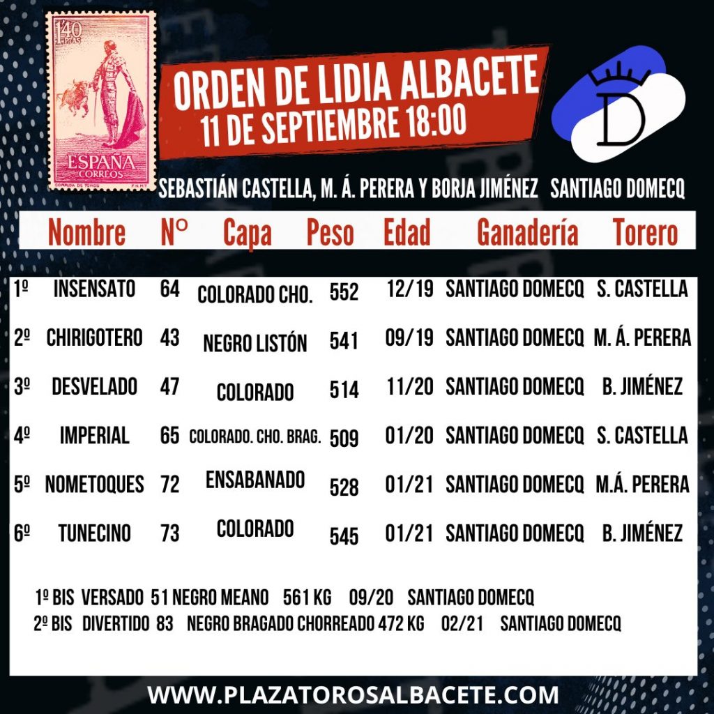 Sorteados y enchiquerados los de Santiago Domecq para la tarde de hoy en Albacete