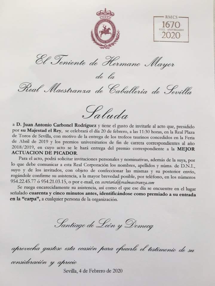Actualidad TaurinaPremios Juan Antonio Carbonell mejor picador en la Maestranza en 2019 17 febrero, 2020 FacebookTwitterPinterestWhatsApp