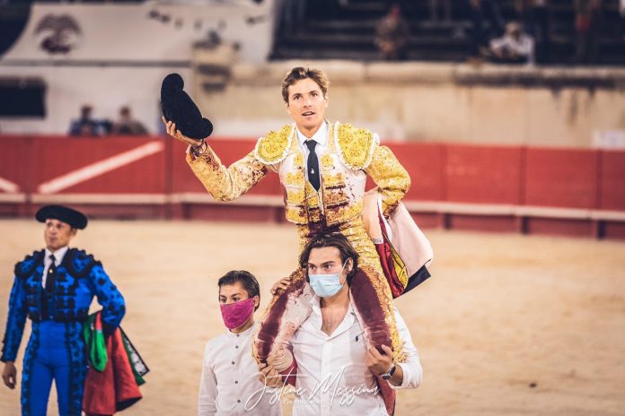 Juan Leal, triunfador de la tarde con dos orejas de un gran toro de Domingo Hernández. Tarde solvente de Daniel Luque en la alternativa de Marcos. pic.twitter.com/wgxAyWMB9C