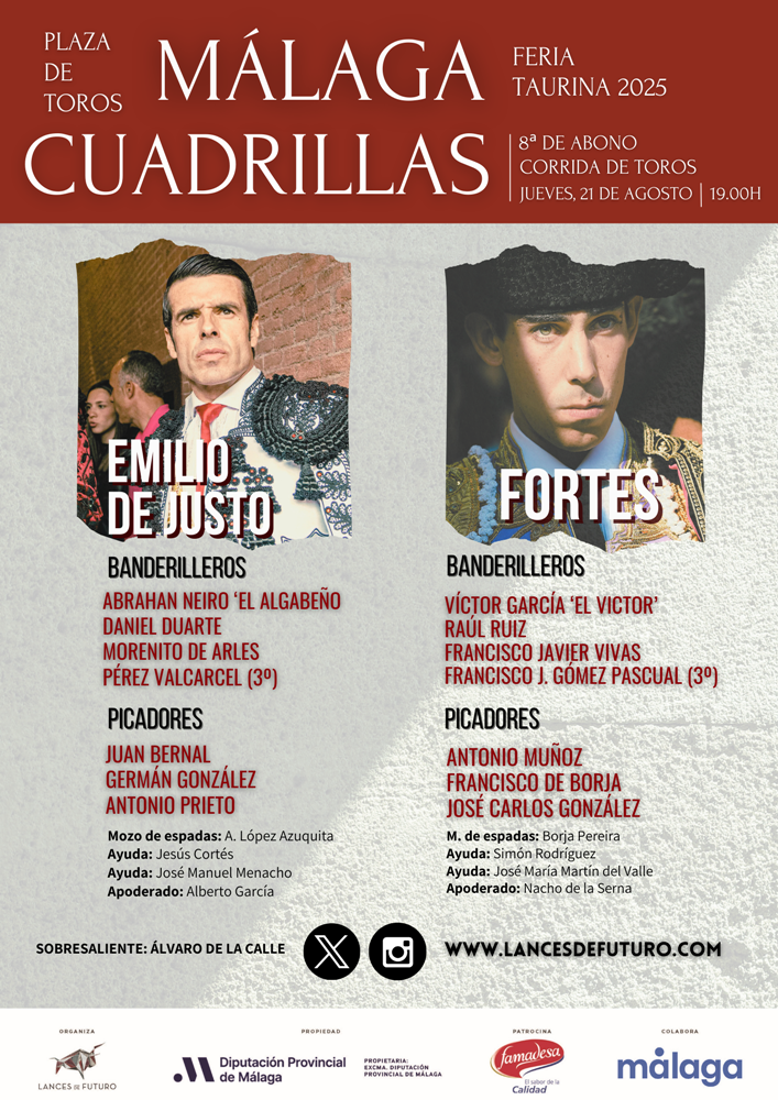 Para cerrar esta feria un mano a mano entre Emilio de Justo y Fortes. El festejo dará comienzo a las 19.00 horas y será retransmitido en directo por Canal Sur TV.