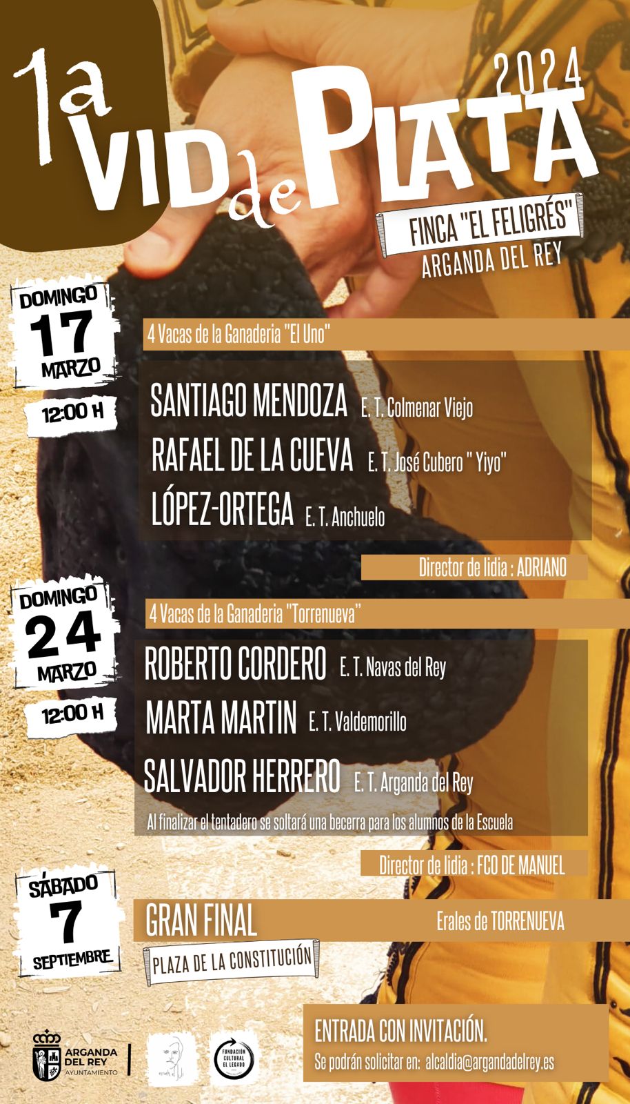 Finalmente, la «Primera Vid de Plata» verá de nuevo acción el domingo 24 de marzo, donde una vez más serán lidiados ejemplares de Torrenueva, pero en esta oportunidad para los aspirantes Roberto Cordero, Marta Marín y Salvador Herrero, alumnos de las escuelas taurinas de Navarras de Rey, Valdemorillo y Arganda del Rey respectivamente, quienes tendrán al madrileño Francisco de Manuel cómo director de lidia y al igual que los primeros, deberán luchar para ganarse un puesto en la gran final prevista para el sábado 7 de mayo donde esperamos ver a los venezolanos brillando con luz propia.