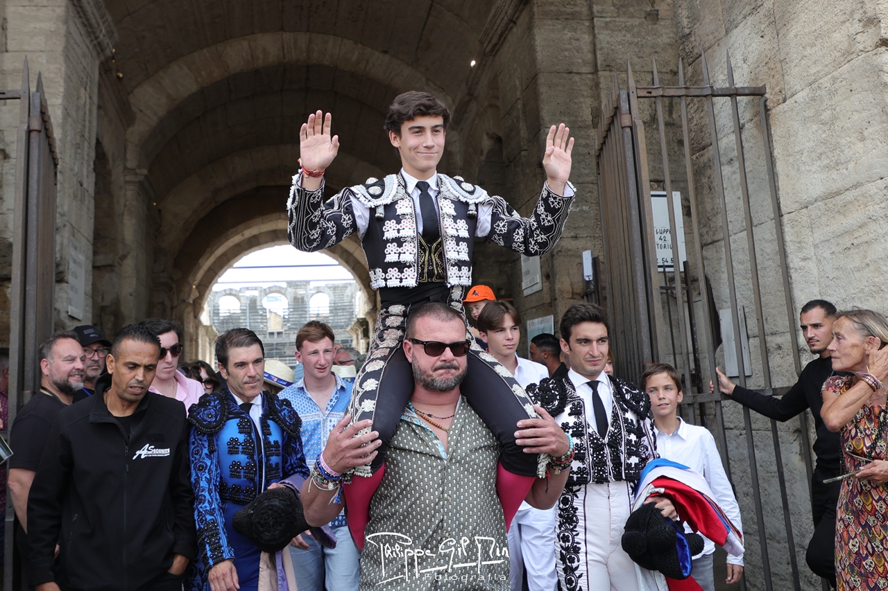 Arles (Bouches-du-Rhône, Francia). Domingo 14 de septiembre 2025, matinal. Anfiteatro romano. Novillada sin picadores dentro del marco de la feria del Arroz. Se lidiaron erales de Jalabert Frères. Entrada: Un cuarto.