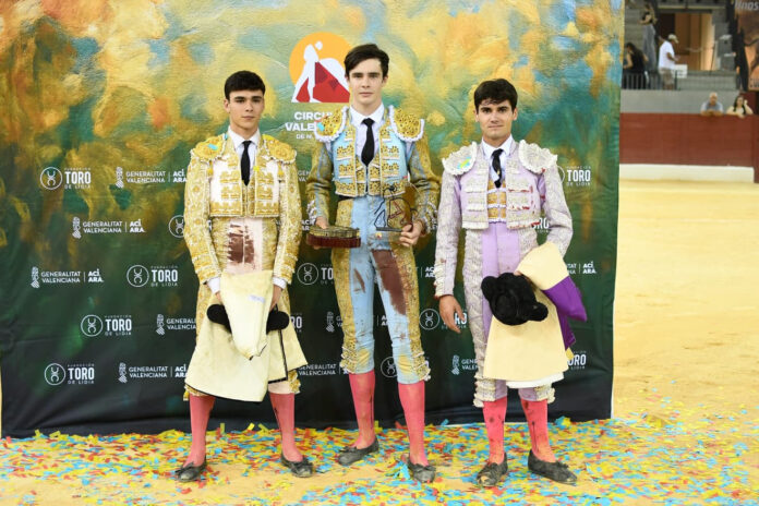 La localidad alicantina de Villena ha acogido en la tarde de hoy la Gran Final del Circuito Valenciano de Novilladas 2025. Simón Andreu, Mario Vilau y Juan Alberto Torrijos se han enfrentado a novillos del hierro de Daniel Ramos.