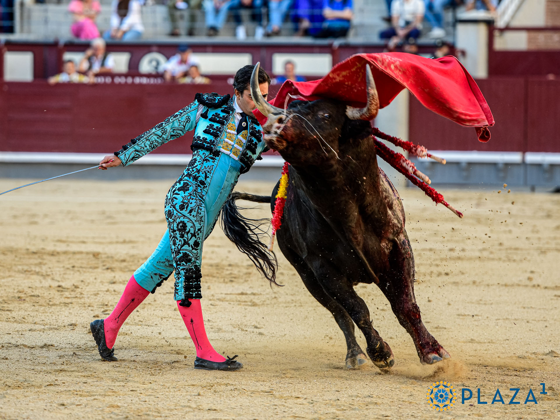 Miguel de Pablo basó su faena a su primero de Dolores Aguirre en los terrenos que le exigió el toro. Un animal manso pero encastado, que tuvo codicia y recorrido. Comenzó el madrileño con una serie por el pitón derecho de mucho mando y poder. Con la izquierda el toro se complicó, aunque logró naturales sueltos. Volvió a la diestra y logró los mejores pasajes, con dos series de ligados muletazos de buen trazo y profundidad rematados con vibrantes de pecho. Una buena estocada de efecto fulminante puso el broche final y desencadenó la petición de oreja no atendida. Dio una vuelta al ruedo. El quinto de Sobral le puso las cosas complicadas. Prendió a Miguel de Pablo aparentemente sin consecuencias cuando lo intentó por derecho. Saludó ovación tras otra estocada efectiva.