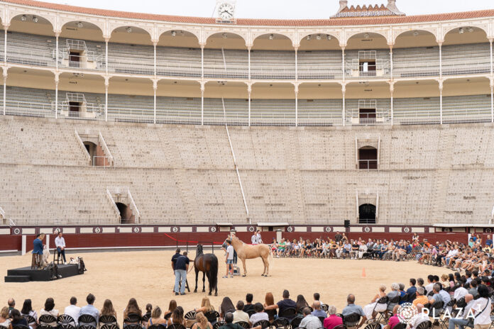 Los rejoneadores, junto con sus caballos, han mostrado las principales diferencias entre la vestimenta lusa y española, explicando con detalle cada tradición, y otros detalles básicos de la preparación de los caballos como es el enjaezado.