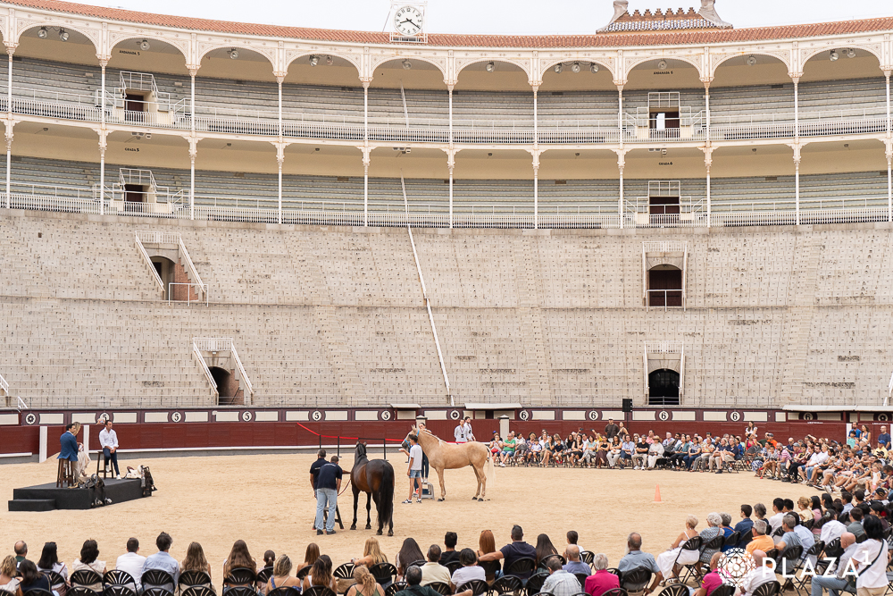 Iván Magro y Luís Rouxinol Jr., dos de los nombres propios de la corrida de rejones que tendrá lugar este jueves a las 21:00h., han protagonizado hoy un multitudinario acto en el ruedo de la Plaza de Toros de Las Ventas, dentro de la Semana del Caballo y presentado por la periodista Marta Manzano.