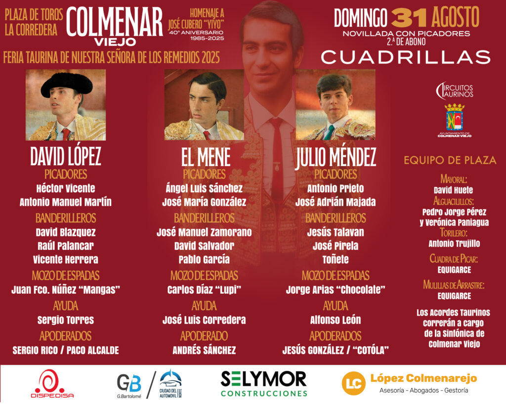 Los novilleros David López, Iker Fernández “El Mene” y Julio Méndez serán los encargados de su lidia. El sobrero pertenece a la ganadería de portuguesa de David Ribeiro Telles.