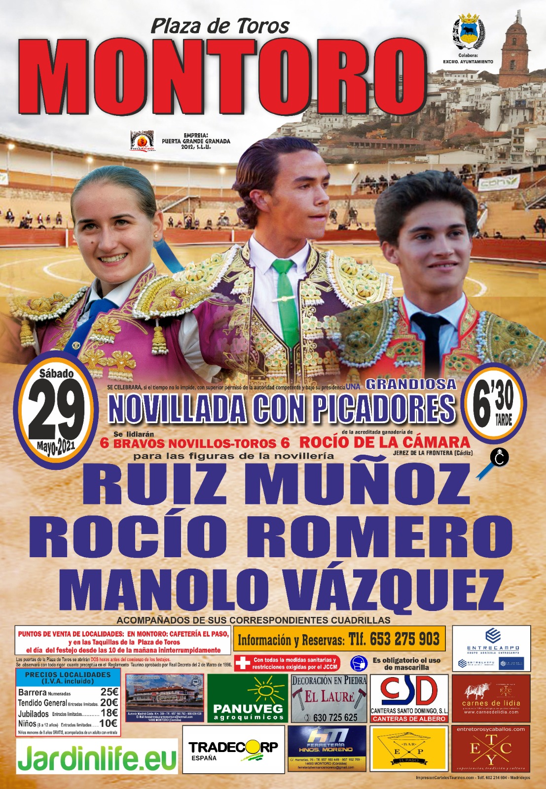 Actualidad TaurinaCovid19 Novillada en Montoro 6 mayo, 2021 FacebookTwitterPinterestWhatsApp La empresa Puerta Grande programa una novillada con picadores en Montoro (Córdoba). La Novillada tendrá lugar el próximo 29 de Mayo a las 18.30 h, serán lidiadas reses de Rocío de La Cámara por Ruíz Muñoz, Rocio Romero y Manolo Vázquez.