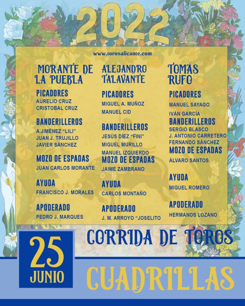 Los espadas Morante de la Puebla, Alejandro Talavante, Tomás Rufo forman la terna de hoy.