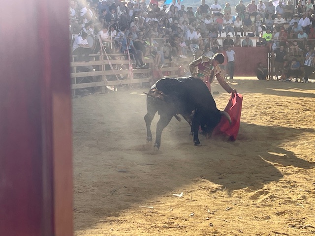 Nota.- El festejo se celebró como es típico en estas localidades del Marquesado en la plaza de toros artesanal montada para la ocasión en la plaza del pueblo. Enorme ambiente de gente joven y muy joven en la plaza de toros.