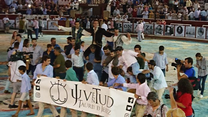 Cerraba la tarde un negro entrepelao que lo recibe Pepe Moral con un vistoso saludo capotero por verónicas que remata con una soberbia medía. Por delantales lo llevó al caballo que le recetó un buen puyazo. Chicuelinas al paso ejecuto para dejarlo en el segundo encuentro con los montados. Brindó al respetable Pepe Moral para esperarlo en el centro salado del albero sanluqueño y recetarle un pase cambiado por la espalda y ligar con una tanda en redondo de mucho calado. Humillaba “Milhijos” y seguía con mucho celo la pañosa que le mostraba el de los Palacios que escuchaba los oles del respetable en cada muletazo, mientas sonaba la banda de música. Pepe estaba metido en la faena y cogió la mano de los billetes. Naturales eternos, largos, humillados y con una clase infinita. Salió la raza y la casta del torero de Los Palacios que embarcaba la noble embestida que no se cansaba de embestir. Un mar de pañuelos llenaban las gradas pidiendo el indulto y Pepe Moral seguía a lo suyo, lidiando, ligando y mandando, asomó el pañuelo naranja en la balconada presidencial llegando a indultar al toro. Sencillamente soberbio Pepe Moral. Pepe Moral y Victorino dan juntos la vuelta al ruedo.