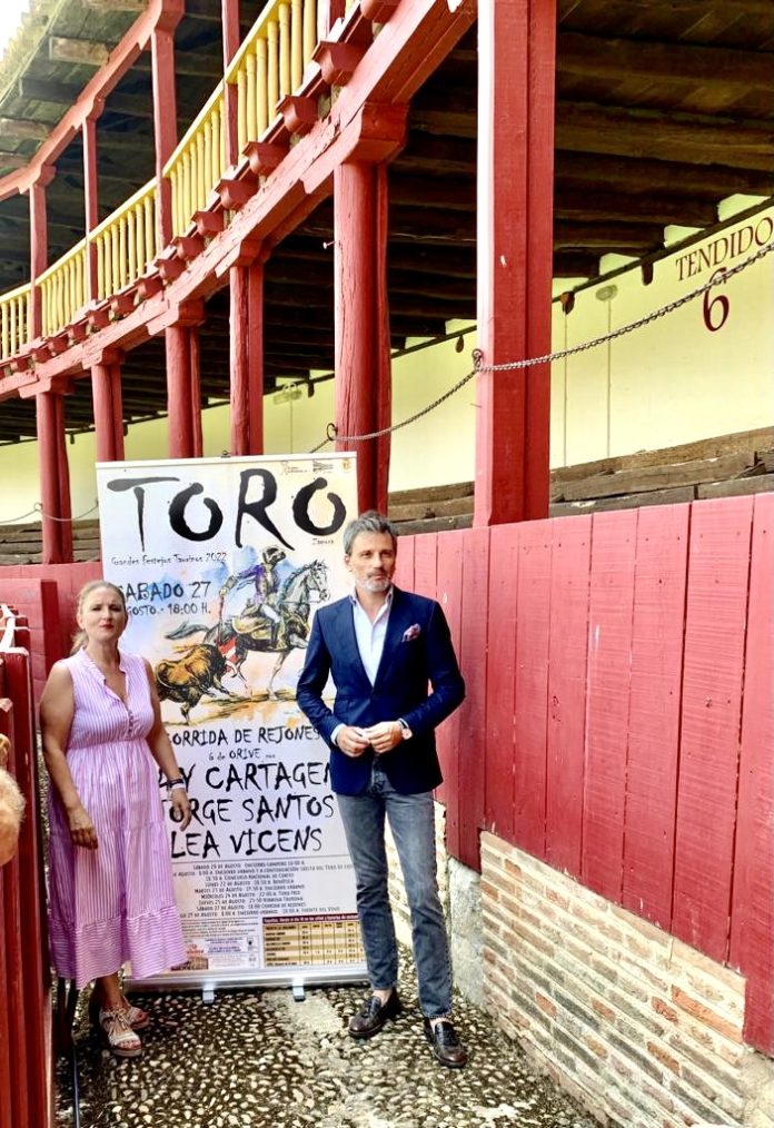 El empresario Jorge Buendía junto a la concejala de cultura Sara Perez Benito han presentado el cartel de la feria 2022 que este año hace una apuesta internacional por el mundo del rejoneo con seis toros de la ganadería charra de Orive para el español Andy Cartagena, el portugués Jorge Santos y la francesa Lea Vicens. El El festejo se celebrará el próximo domingo 27 de agosto a las 7 de la tarde.