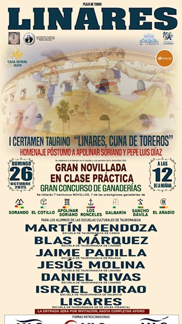 En la noche de ayer 8/ 10/ 25 fue presentado el primer Certamen Taurino “Linares Cuna del Toreo”. Homenaje Póstumo a Apolinar Soriano y Pepe Luis Díaz a celebrar en la Plaza de toros de Linares y en el cual la Escuela de Tauromaquia de Linares ha sido la cabeza visible del mencionado evento.