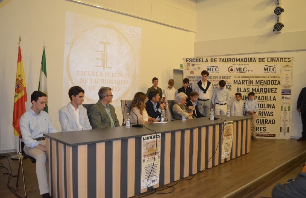La mesa presidencial entre otros estuvo presidida por la alcaldesa de Linares, Auxi Del Olmo, Curro Martínez, María José Gualda y varios alumnos de la Escuela de Tauromaquia Linarense.