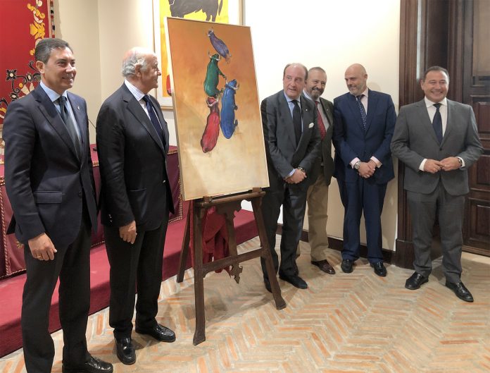 También intervino Luis Rizo, autor del cartel del festival, que explicó el sentido de la obra: “Los toros de la obra tienen cuatro colores: morado y verde por el Cristo y la Virgen de la Esperanza de Triana, y rojo y azul por las túnicas de la Hermandad del Baratillo y la botonadura de los nazarenos de la Piedad”.