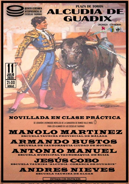 Organiza la Escuela de Tauromaquia Alcudia de Guadix con la colaboración del Ayuntamiento de la localidad.