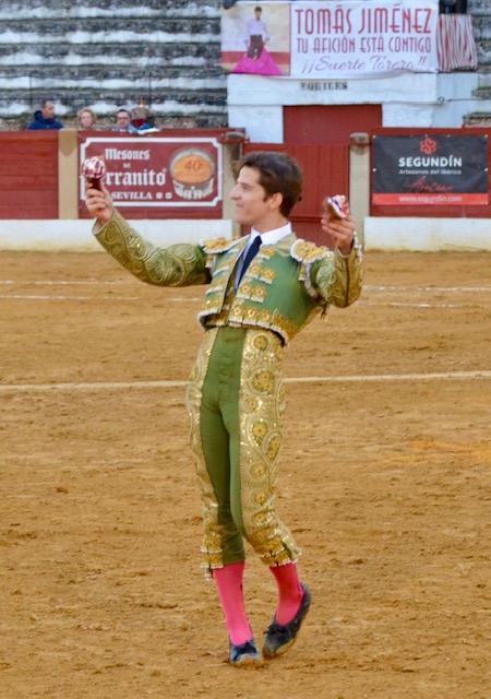 GUSTAVO MARTOS, en su novillo que mató en 8. Lugar palmas.