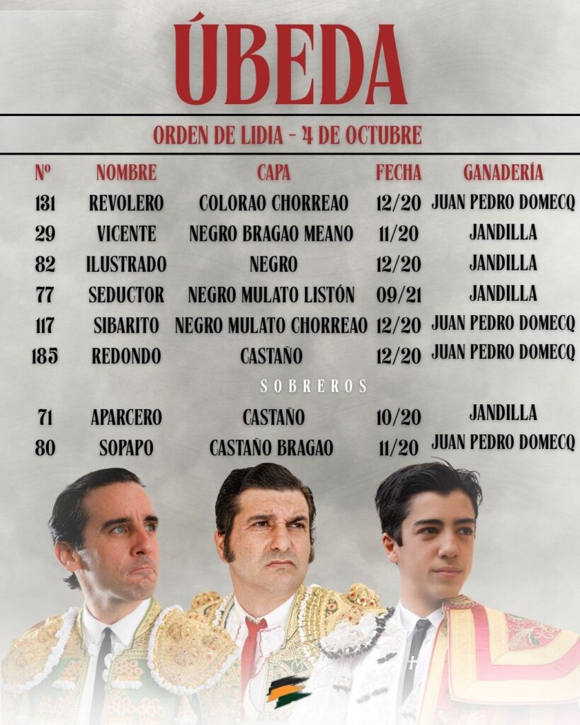Los toros de Juan Pedro Domecq y Jandilla ya esperan en los chiqueros de Úbeda para el cartelazo de esta tarde