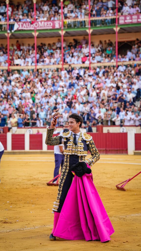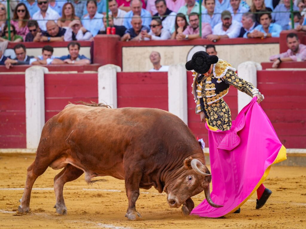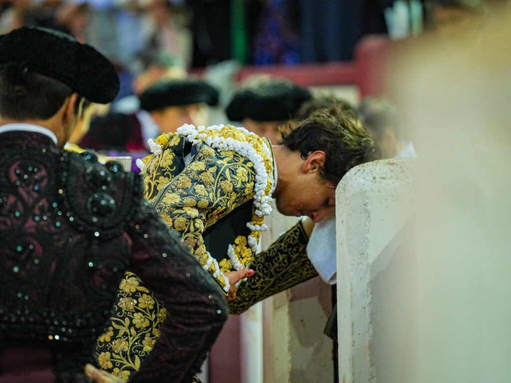 Roca Rey sufrió una voltereta en un inicio dramático. El toro puso en apuros a la cuadrilla en banderillas pero el peruano se rehízo con poder por el pitón derecho, imponiéndose con una faena épica, de entrega total, que levantó al público.