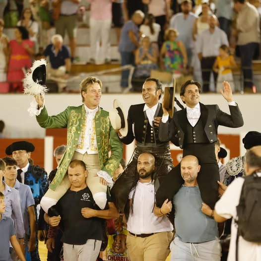 Actualidad TaurinaReseña Festejos Rui, Ventura y Ferrer salen a hombros en Antequera 23 agosto, 2025 FacebookTwitterPinterestWhatsApp Plaza de Toros de Antequera (Málaga) Toros de Prieto de la Cal, bien presentados y de buen juego en líneas generales. Rui Fernandes, oreja / dos orejas Diego Ventura, oreja / dos orejas y rabo Ferrer Martín, dos orejas / dos orejas