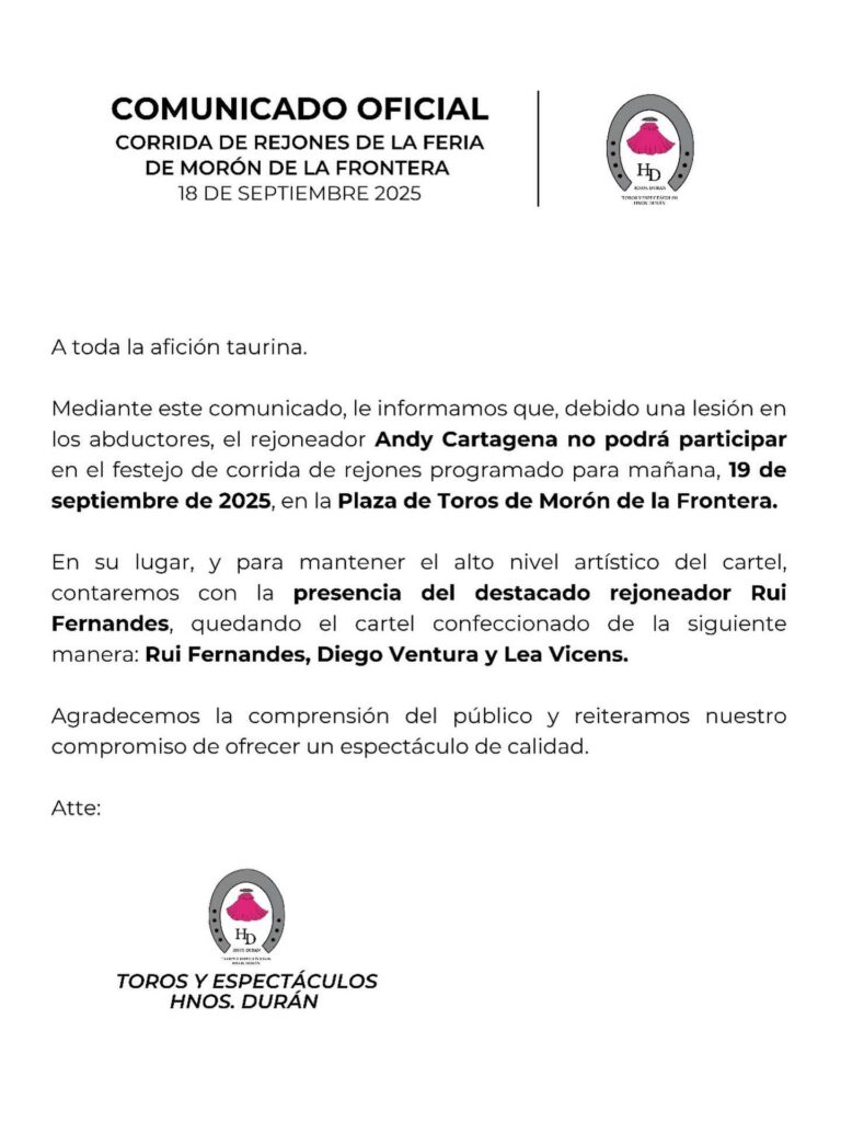 El cartel lo forman los rejoneadores Rui Fernandes, Diego Ventura y Lea Vicens.