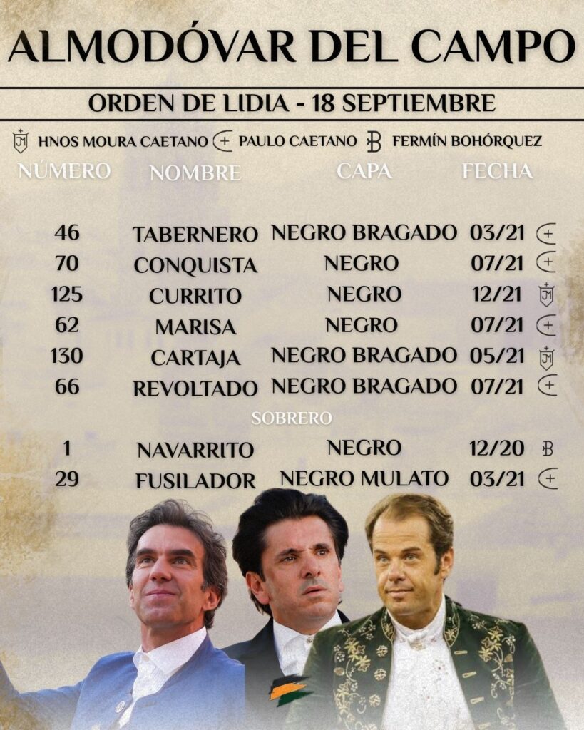 Seis toros de las ganaderías de Hermanos Moura Caetano y Paulo Caetano han sido sorteados y enchiquerados esta mañana, 18 de septiembre, en los corrales de la plaza de toros de Almodóvar del Campo.