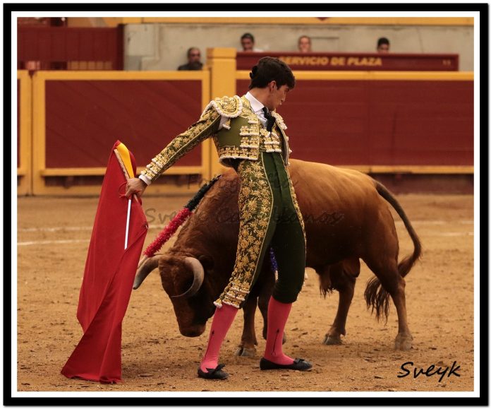 Antonio Grande, con el colorado de La Guadamilla, faena de altibajos silenciado por la espada. Con su segundo un animal muy bruto en los primeros tercios, pero Grande fue obligándole en la muleta en una faena de mérito que malogro con la espada.
