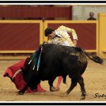 Fernando Plaza, con su primero un animal que no tenía ni clase ni trasmisión y pese a que Plaza lo intento, la tarde ya empezaba a pesar, además de que tampoco tubo espada, con el segundo de su lote el animal de más volumen y serio de la tarde, se gustó Plaza con el capote, parecía que lo bueno estaba para el final, en banderillas le amago dos veces a Sergio Aguilar cuando intentaba colocarlo en suerte, poniéndose por delante de los rehileteros al intentar clavar fue el tercero de la cuadrilla Juan Parra que dejo dos pares de exposición y al que el público hizo desmonterarse. Se fue a los medios Plaza para citar al novillo por estatuarios, y a galope tendido fue el animal que cambio en décimas de segundo su trayectoria llevándose al torero por delante, el golpe fue brutal, la caída peor y los tres gañafones que le tiro en el suelo de los que te dejan helado, no podía levantarse plaza segundos de angustias al grito de que no sentías las piernas, gracias a dios, lo vimos salir de la enfermería por su pie, para marcharse en el coche de cuadrillas, en un principio fue atendido por poli contusiones y erosiones varias.