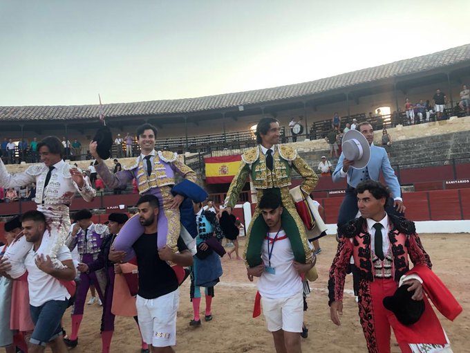 Actualidad TaurinaReseña Festejos Triple puerta grande en El Burgo de Osma 17 agosto, 2019 FacebookTwitterPinterestWhatsApp Plaza de Toros de El Burgo de Osma, (Soria) Toros de Murteira Grave Curro Díaz, oreja / oreja Toñete, oreja / oreja Ángel Téllez, ovación / dos orejas Incidencias.- Tres cuartos de entrada. Los tres espadas salieron a hombros junto al mayoral.