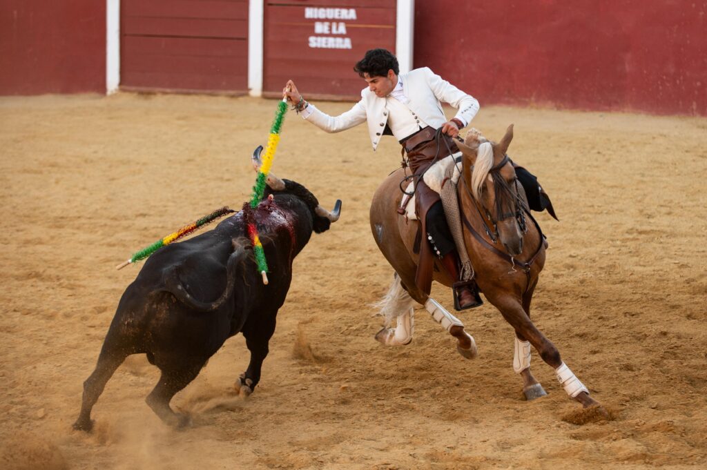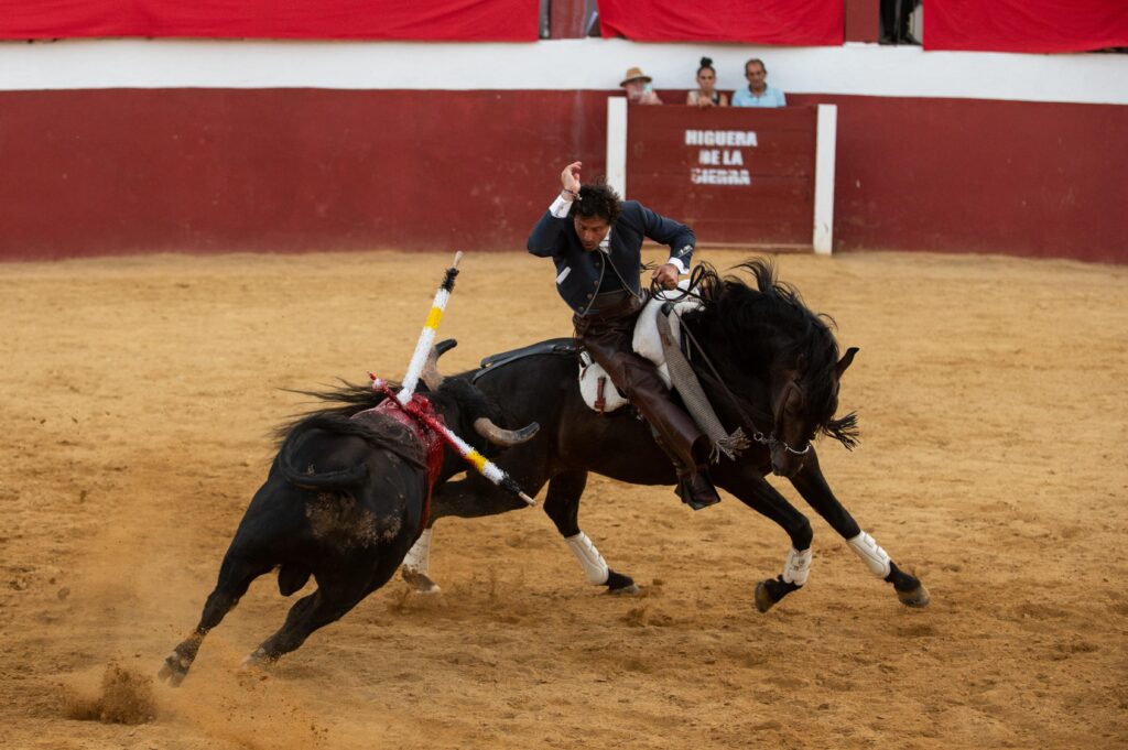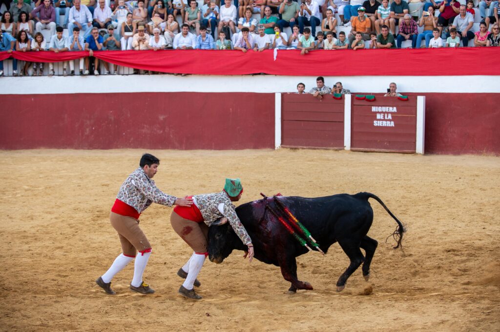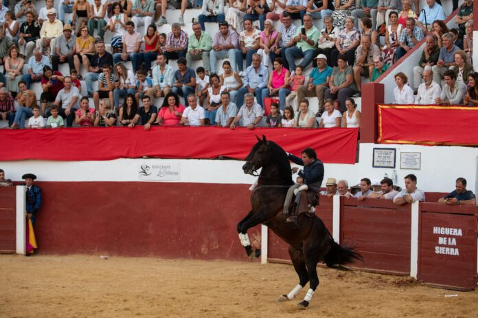 Tarde de calor en la localidad serrana de Higuera de la Sierra, con unos tendidos entregados al festejo de rejones que esta tarde protagonizaron el rejoneador de Escacena del Campo y el rejoneador local El Panita.